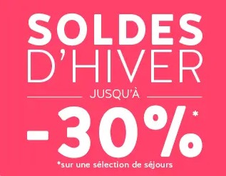 Valables jusqu'au 03/02 prochain, profitez de remises jusqu'à -30% sur une sélection de séjours à la mer et à la montagne en formule tout compris (+ votre bonus partenaire de 1% de remise supplémentaire sur ces promos du moment).